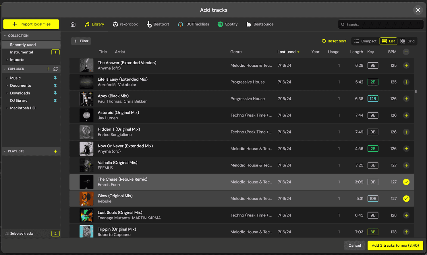 Start by installing the desktop app for Mac or Windows. The desktop version gives you the best performance, works offline and is the only mode that connects to your local rekordbox, Serato and other DJ libraries, as well as stems and AI beatgrid tools.