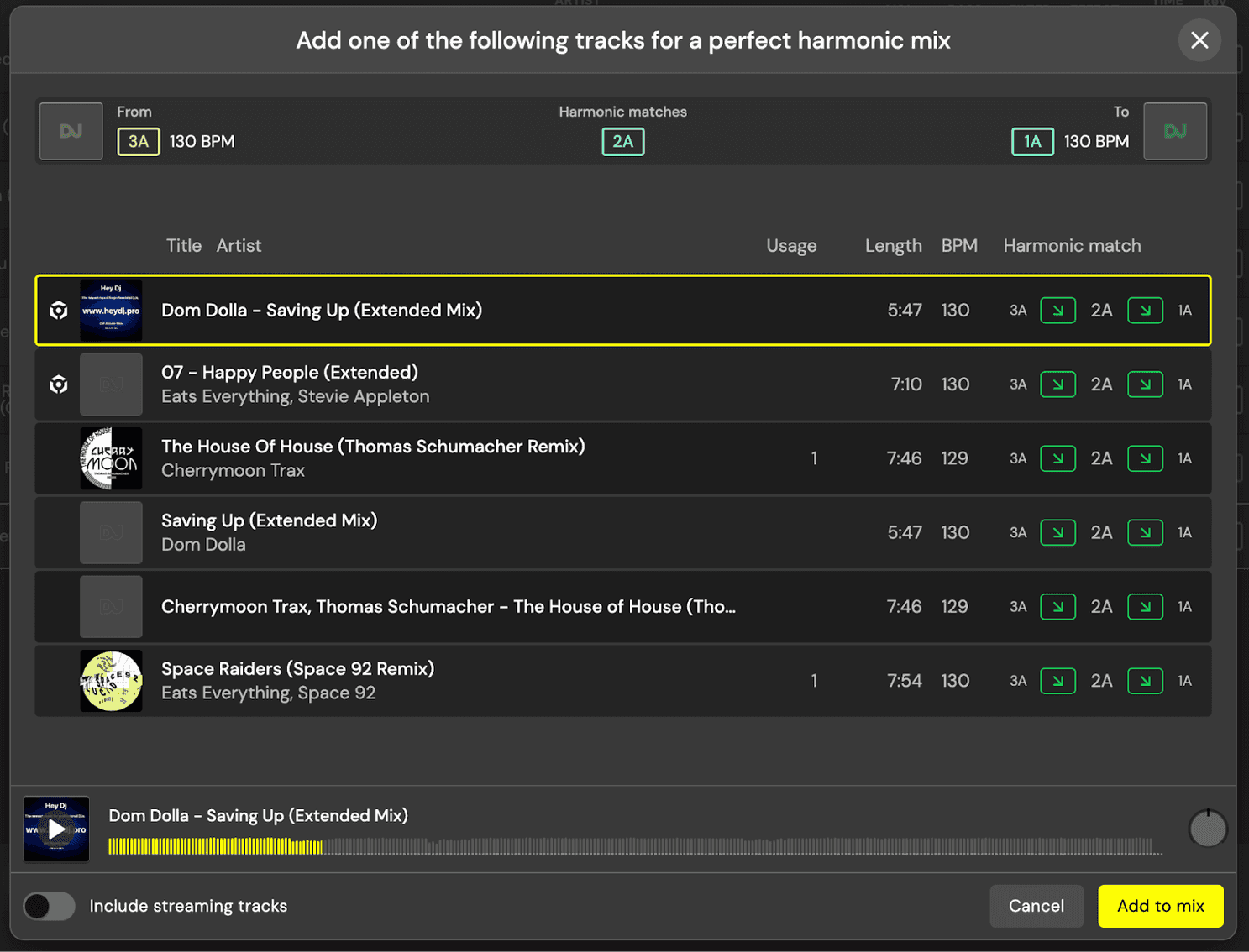 DJ.Studio uses the principles of Harmonic Mixing and the Camelot wheel for that. The great thing is... you don't need to know any complex music theory, DJ.Studio does it for you and uses color coding to tell you the harmonic compatibility of each track,