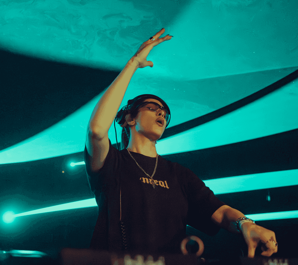Celebrated for her unique blend of powerful big-room techno with hypnotic and experimental sounds, she has developed a distinct and captivating style.