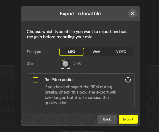Record and export - The last stage is recording and exporting your mix. You can export sets to a wide range of locations from DJ.Studio - including youtube videos, or Ableton multi-track.