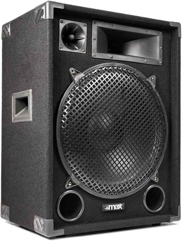 This is a passive speaker, which just means you need a separate amp to feed it power. For DJs who like to build their own systems, this unit is a beast for the price. Hook this up to a good amp, and you’ll have no problem handling a small club or a big house party.