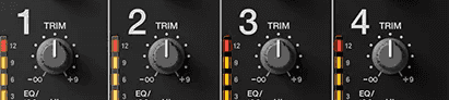 This is the channel fader, which is used more artistically than technically. These long faders let you play with the volume of a channel, and sit in between the input gain and master output.