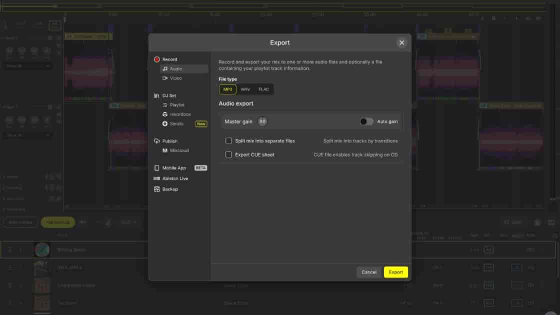 DJ.Studio's project-based nature makes it a templating powerhouse. A DJ can create a template for their weekly radio show that includes their jingles, specific FX chain settings for voiceovers, and even placeholder sections for different energy levels. The export tools then allow them to render the full show and multiple promo clips in one go, a workflow that is simply not available in most other dj software.