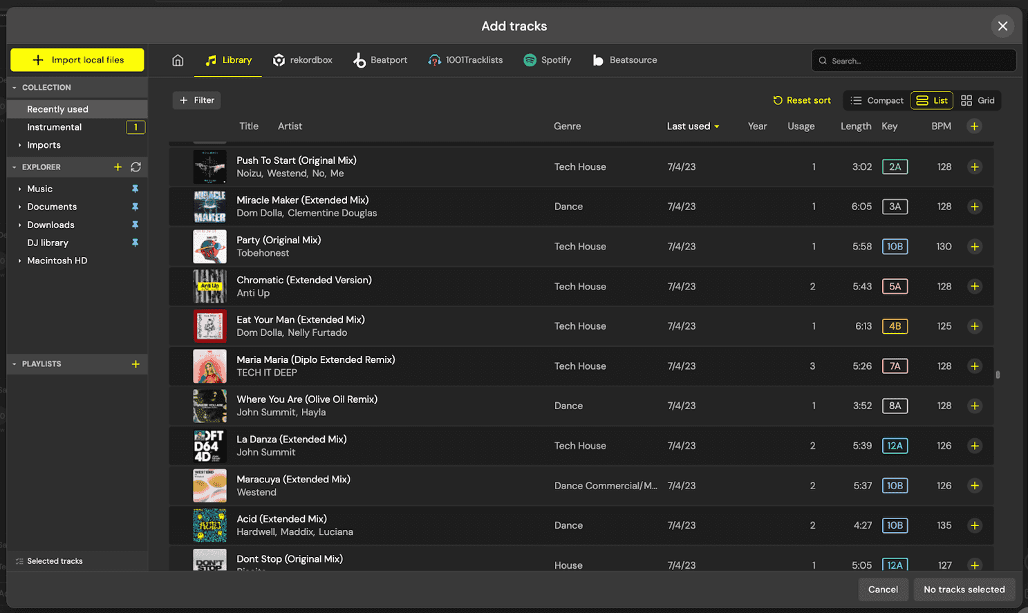 What makes this hybrid workflow powerful is how DJ.Studio enhances Rekordbox’s structured workflow. While Rekordbox is perfect for performance, DJ.Studio gives you the freedom to tweak transitions, effects, and mix layouts without losing the cue points and playlists you've carefully prepared. You can import Rekordbox playlists directly into DJ.Studio, allowing you to experiment with new mixing techniques in a more visual and intuitive environment.