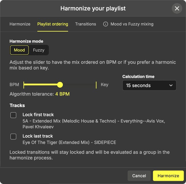 What it is: Harmonize is an intelligent feature within DJ.Studio that uses advanced algorithms to analyze your chosen playlist. It understands both the tempo and the musical key of every song.